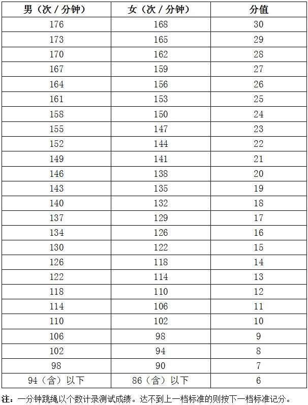 2. 评分细则: - 800米跑步:女子成绩在3分30秒以内(含3分30秒)得满分,每超过1秒扣0.1分;男子成绩在3分30秒以内(含3分30秒)得满分,每超过1秒扣0.1分。 - 1000米跑步:女子成绩在4分10秒以内(含4分10秒)得满分,每超过1秒扣0.1分;男子成绩在4分10秒以内(含4分10秒)得满分,每超过1秒扣0.1分。