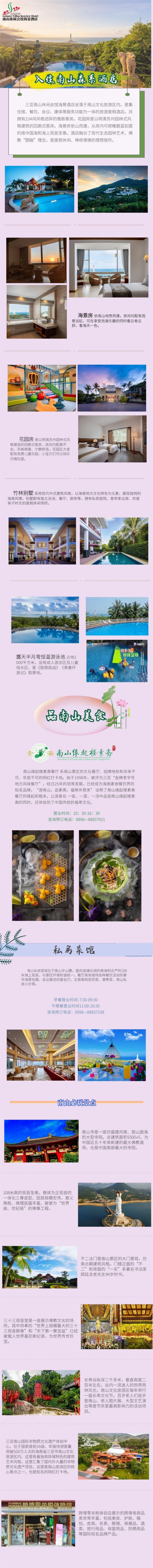 位于南山文化旅游区内,是集住宿、餐饮、会议、康体等服务功能为一体的旅游度假豪华酒店,拥有 “花园区”“海景区”“竹林别墅区”共231客房。