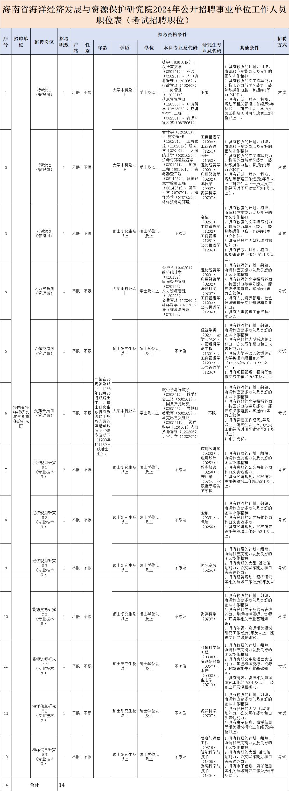 海南省海洋经济发展与资源保护研究院2024年公开招聘事业单位工作人员公告(第1号)