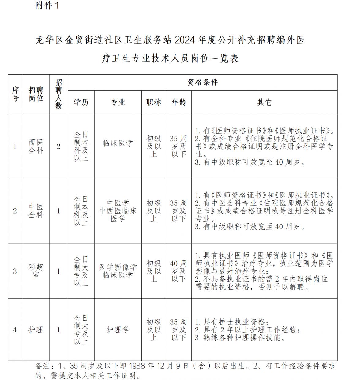 附件1.龙华区金贸街道社区卫生服务站2024年度公开补充招聘编外医疗卫生专 业技术人员岗位一览表.docx