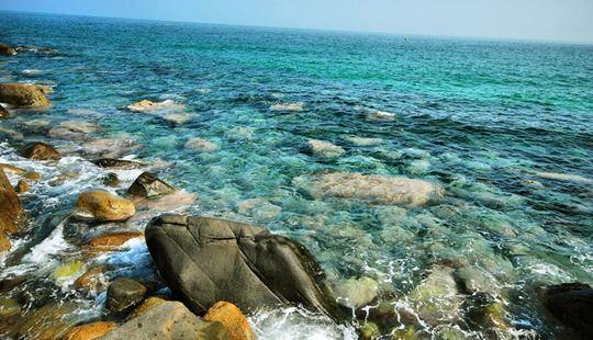 5、分界洲岛风光,分界洲岛东面悬崖峭壁,浪花如雪;西面则有一波平浪缓的小海湾,湾内的沙滩松软细白。