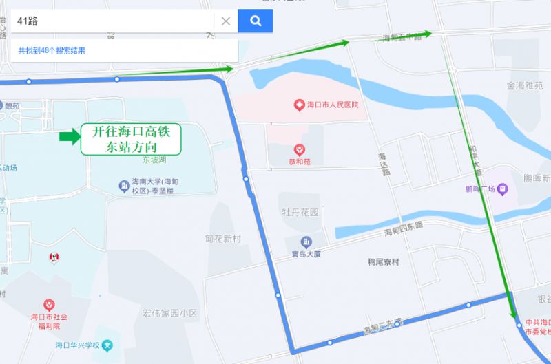 (一)调整路段:开往海口高铁东站方向车辆直行海甸五中路、右转海达路、右转海甸三东路、左转人民大道衔接原线路运营;开往白沙门公交场站方向车辆直行海甸二东路、左转海达路、左转海甸三东路衔接原线路运营。
