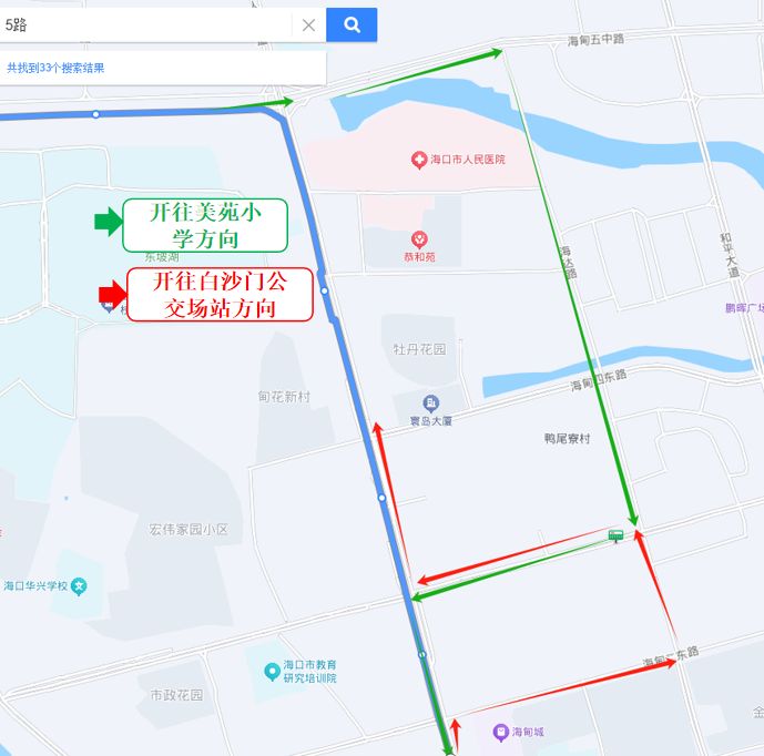 5. 线路5:原线行驶,取消“新海港”站,增加“海口火车站”站。