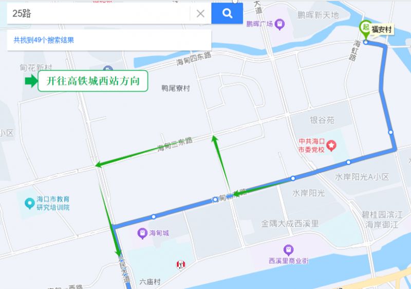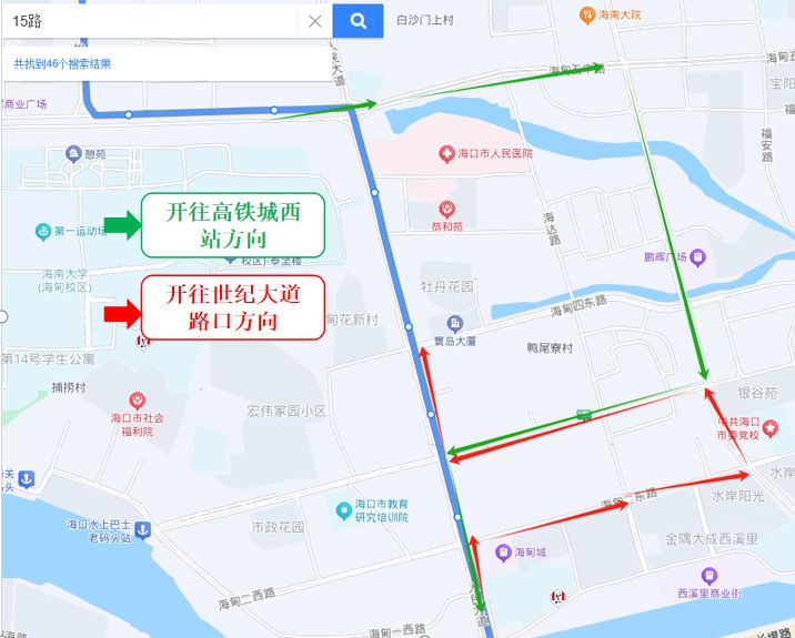 (一)调整路段:开往高铁城西站方向车辆直行海甸二东路、右转海达路、左转海甸三东路、左转人民大道直行衔接原线路运营;开往福安村方向运营路段不受影响。