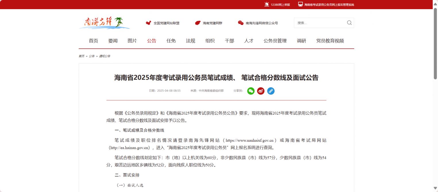 2025年海南省公务员考试合格分数线已经揭晓!为了帮助广大考生及时了解自己的考试成绩及分数线情况,以下为您详细解读成绩查询入口及相关信息。