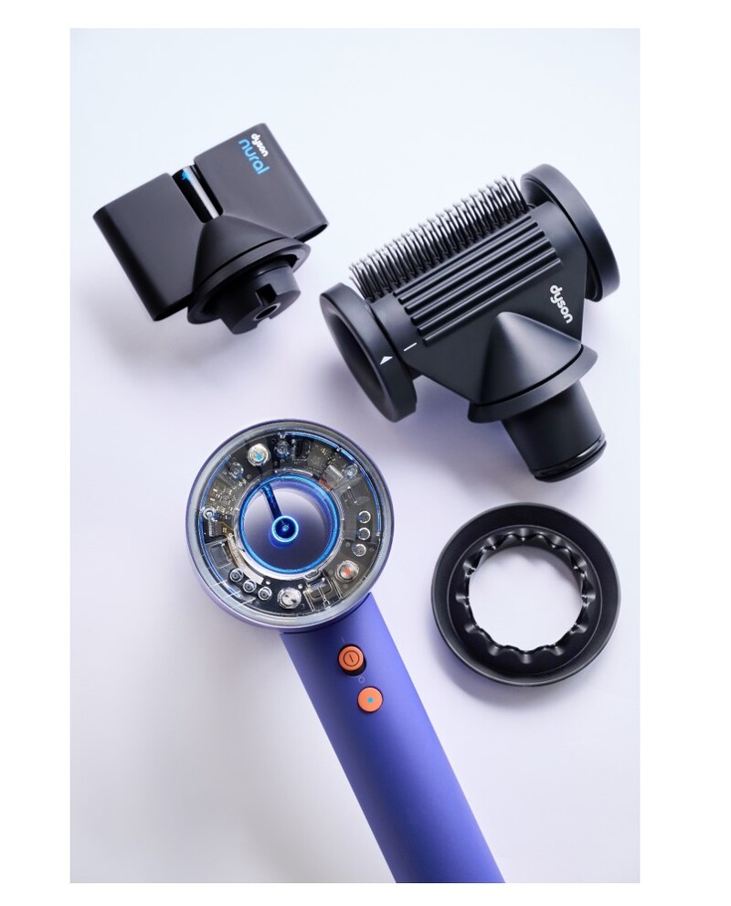 你知道吗?吹风机过于高温的热风会让头髮毛躁粗糙不说,头皮也会变得乾燥敏感,容易长出不健康的头髮,Dyson Supersonic Nural™ 吹风机全新搭载了飞时测距感测器,每秒能接收900万的数据,吹风机会以红外线测量头髮与机器之间的距离,然后自动调节出风温度。