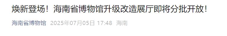 2025年,海南博物馆将迎来焕新升级,特色展厅分阶段精彩亮相,这一消息无疑将为海南的文化事业发展注入新的活力。以下是对这一事件的简要分析: