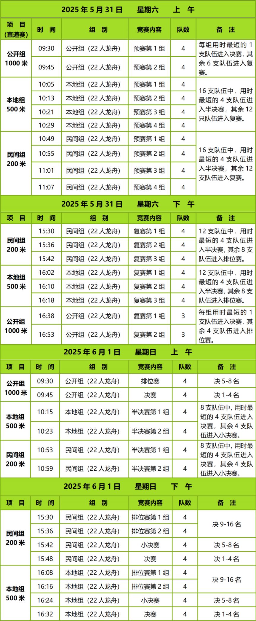 2025“海口杯”端午国际龙舟邀请赛竞赛日程表